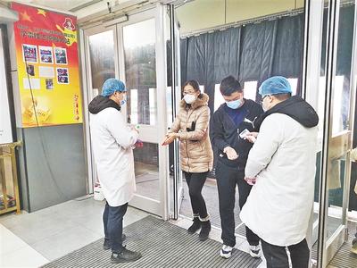 近日,衡水各个商超积极开展疫情防控工作。这是衡水市信誉楼商厦门口,工作人员正在对进入商场的消费者进行体温监测和消毒。 河北日报记者 焦 磊摄