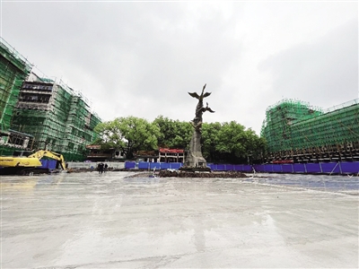 提质改造中的雁峰广场。■周琪 摄