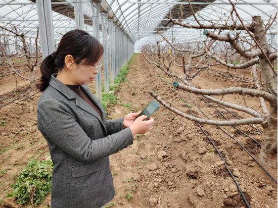 横渠镇风池村果宝农业专业合作社负责人高梅芳使用手机操控智能化浇灌系统
