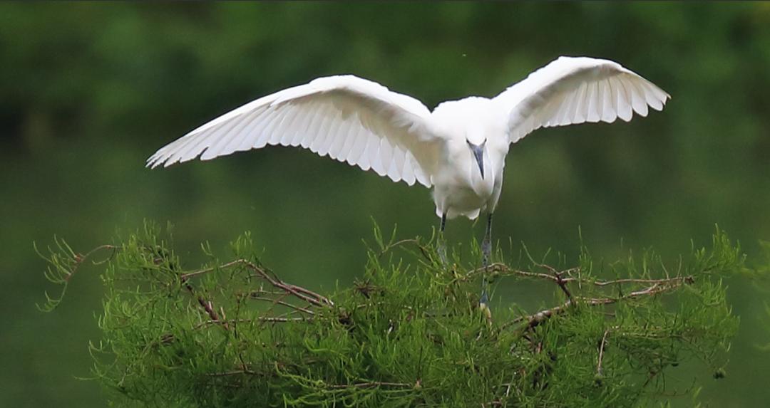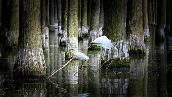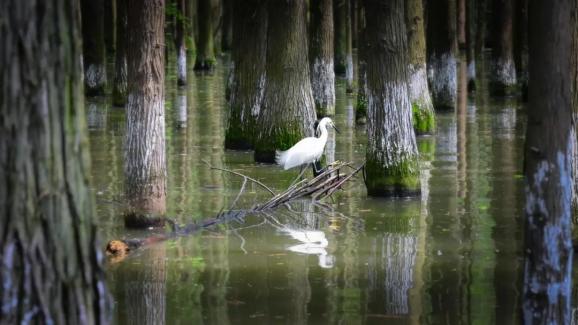 树生水中,鸟栖林中,鱼游湖中,形成类似于亚马逊河的独特生态景观。独特的地理环境和良好的森林植被,为数以万计的鸟儿创造了栖息、生活和繁衍的有利条件。黑鹳、白头鹤、白琵鹭、白鹭、池鹭、夜鹭、小天鹅、白头鹞、猫头鹰、黑水鸡、水雉、斑嘴鸭等百余种鸟类在此聚集。