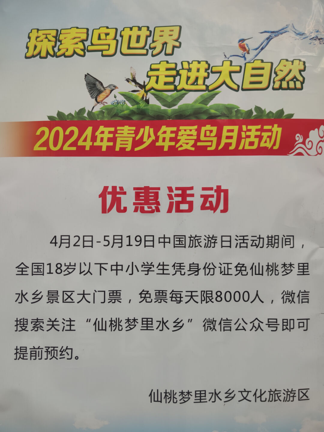 为激励青少年参与爱鸟月活动,该景区宣布,即日起至5月19日,全国18岁以下中小学生前来观鸟,可凭身份证预约,免收门票。