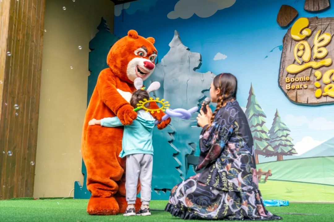除了以上趣味无穷的游乐项目外,乐园内的部分娱乐演出也超适合小朋友们。当小宝贝看到熟悉的《熊出没》的“大明星们”出现在自己面前,相信一定会按捺不住激动的心情,快去拥抱可爱的熊大、熊二、光头强吧!