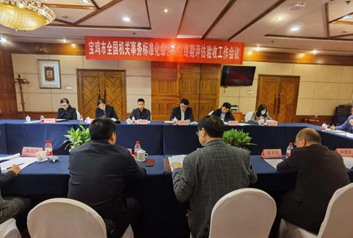 会上,宝鸡市机关事务管理局党组书记、局长张卫东介绍了全国机关事务标准化综合试点工作情况,按照《机关事务标准化评估验收工作指引》,来自国家机关事务管理局、市场监管总局、中国标准化研究院工作组的专家学者通过听取汇报、查阅资料、座谈交流,从工作机制、体系搭建、标准编制、实施运行成效等方面对宝鸡市全国机关事务标准化综合试点工作进行评估。