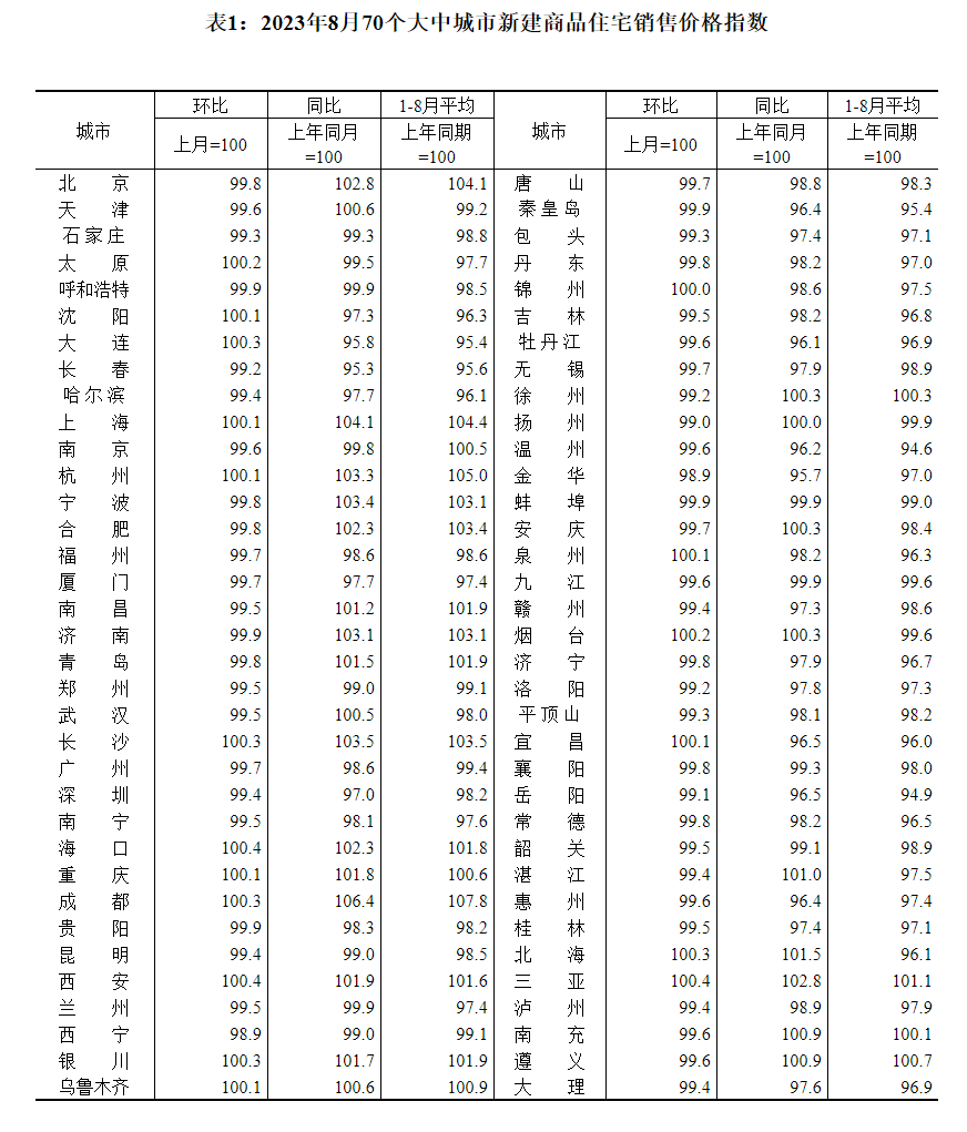 9月15日,国家统计局发布2023年8月份70个大中城市商品住宅销售价格变动情况。8月份,市场继续探底,降温态势延续。