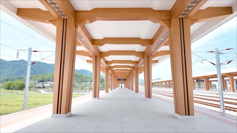 九华山站位于安徽省池州市青阳县,距离九华山风景区约6公里,距离青阳县城2公里。站房建筑面积15000平方米,采用线侧平式布置,站台规模为3台7线,进出站采用“上进下出”流线模式。