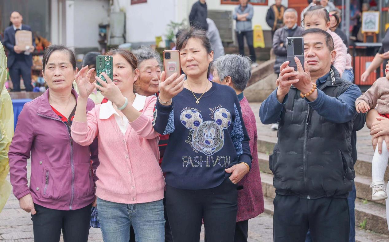 来自山东威海宋佳茹说:“在谷雨这天来到了九华山,第一次现场遇见黄梅戏,拍了好多视频留念,还转发给爸爸欣赏,希望多多演出让我们更多的00后,欣赏到黄梅戏的魅力。”周边商户张先生主动为演职人员送来热饮并说:“感觉活动非常好,今天的黄梅戏、池州傩戏等节目很精彩,与古老灵秀的九华山相映成辉。”