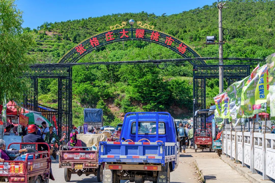 上午到了张格庄镇,可以早点先来逛樱桃市集。镇上的居民们带着自家种的新鲜大樱桃,摆摊售卖,物美价廉超划算!