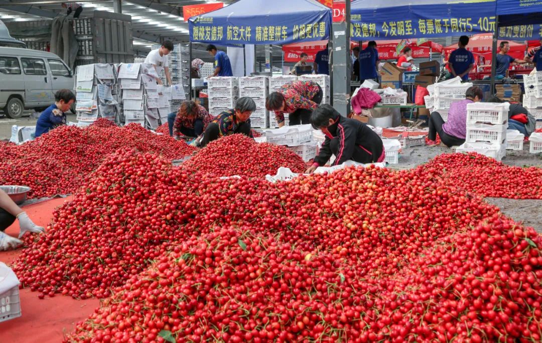 市集里多物流合作、链接线上线下直接配送到家。可以在这里选好樱桃现场填单寄给外地的亲友,非常方便~