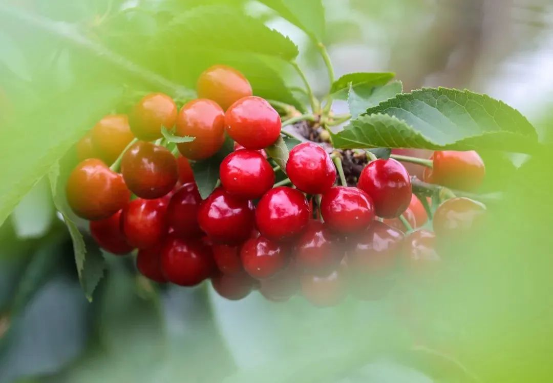 在这里,各种各样的樱桃品种都看得见。酸甜可口的红灯、紫红脆甜的美早、玲珑剔透的黄水晶……琳琅满目的樱桃挑花眼。翻过一座又一座“樱桃山”,体验甜蜜暴击!