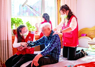 山东省郓城县通过政府购买社会化服务的方式,组织专业人员为分散供养特困人员提供生活照料、康复护理和精神慰藉等方面服务。新华社发