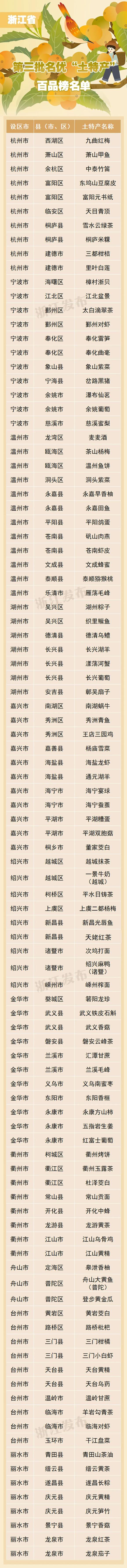 日前,浙江省农业农村厅会同省级有关单位在农发城市厨房举办“浙农优产 百县千品”名优“土特产”系列活动启动仪式。启动仪式公布了浙江省第三批名优“土特产”百品榜名单,“九曲红梅”等100个产品上榜。有你家乡的吗?一起来看~