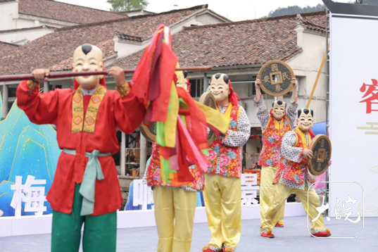 大皖新闻讯   谷雨春光晓,山川黛色青。4月19日,“百场黄梅唱响百家景区”示范演出在池州九华山风景区精彩上演。环布广场的历史建筑,绮丽的自然风光,曲调悠扬的戏曲演出,古朴又充满活力的池州傩戏、青阳腔表演,构成一幅幅生动美好的“上春山、听春曲”画卷,绽放了梦幻九华、人文九华灿烂光彩。九华山当地居民及游客3千余人观看演出。