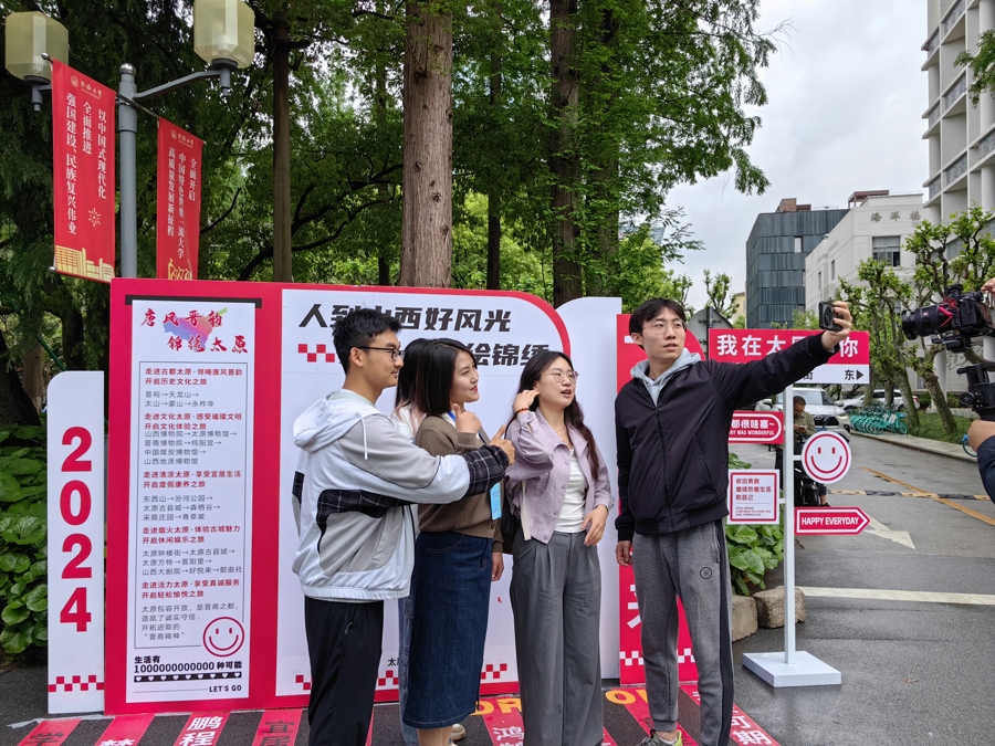 现场还设置了互动环节,介绍太原优秀历史和文旅资源,并赠送“锦绣太原”系列冰箱贴、明信片,打卡图章等。现场扫二维码关注文旅公众号,互动有奖问答抽盲盒红包,还能赢取文创丝巾、冰箱贴、钥匙链、文创书签、太原剪纸等奖品。