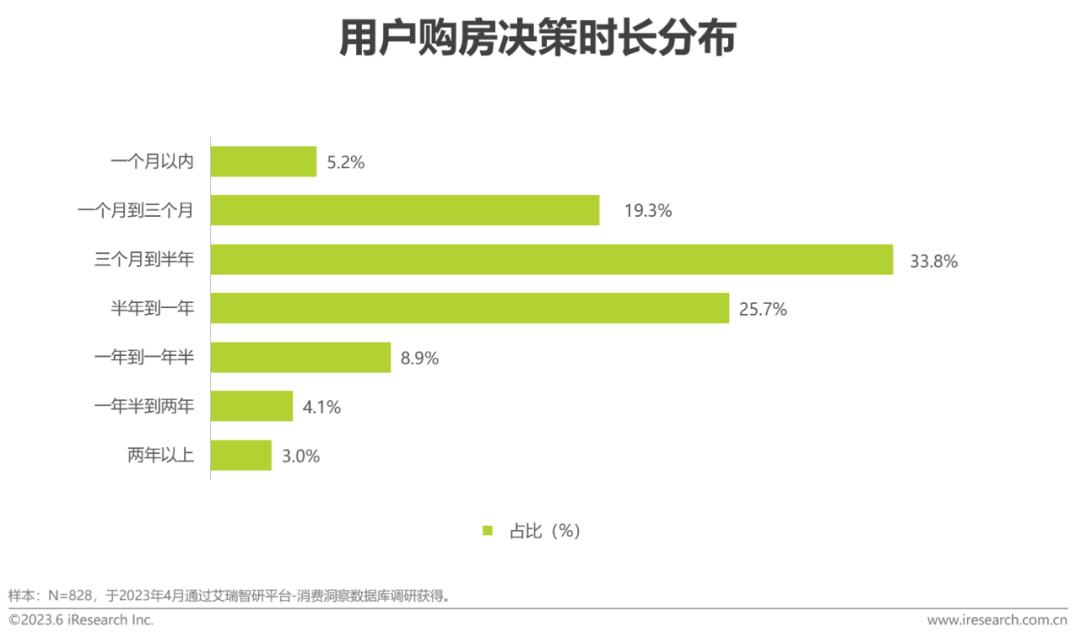 购房决策时长集中在半年内,平均单次收集信息达110分钟