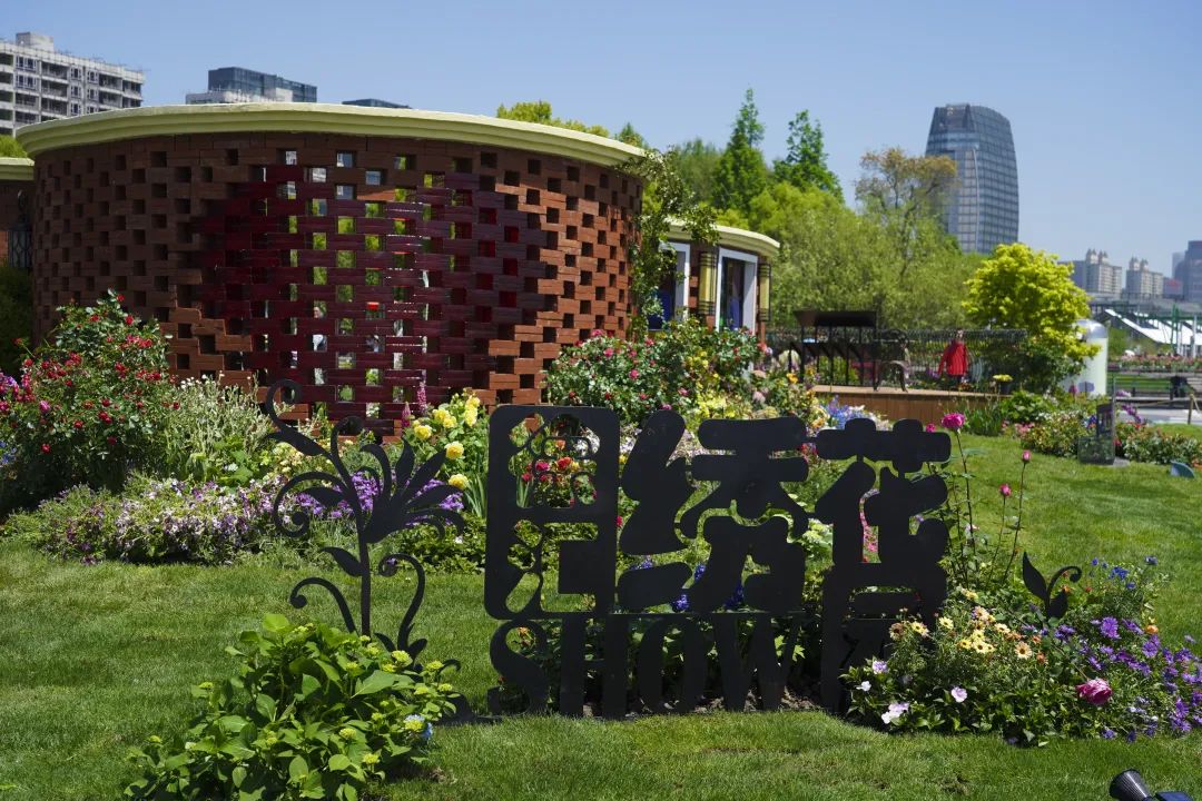 再往前走,一处镶嵌着通透红心的红砖建筑,便是徐汇社区花园展区。通过“窗阳台”“阳台”“露台”“花园”等元素,徐汇社区花园以小见大,配以与展区特性相符合的藤本植物、可食用植物、宿根观花观叶植物以及特色月季,展现出徐汇精致美好生活园艺和浓厚的人文气息。