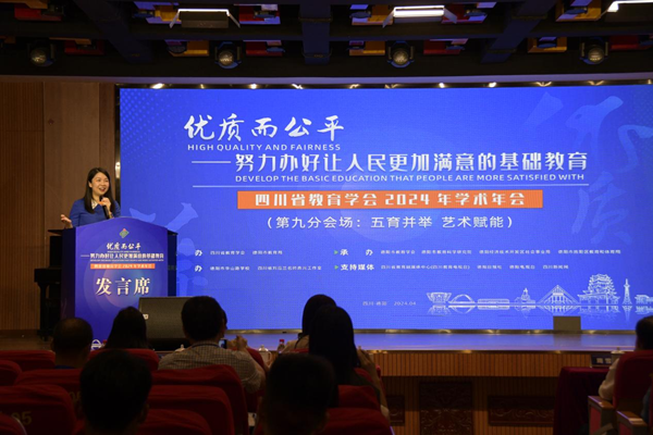 四川新闻网消息 4月28日下午,四川省教育学会2024年学术年会的第九分会场在德阳市华山路学校举行,会议开展了主题为“五育并举 艺术赋能”的学术交流活动。本次分论坛以探究多学科融合,聚焦跨学科思维为主旨,吸引了来自四川省各地市州的众多音乐教育工作者前来参加。四川省教育学会副会长周雪峰、四川省教育科学研究院体育美育劳动教育研究所所长徐伟,旌阳区人民政府教育督导室主任向根,旌阳区教育和体育局机关党委书记张晓红,旌阳区教育科学研究与教育培训中心主任李成,旌阳区教育科学研究与教育培训中心副主任、四川省刘应兰名师鼎兴工作室领衔人刘应兰等领导和专家参加了会议。