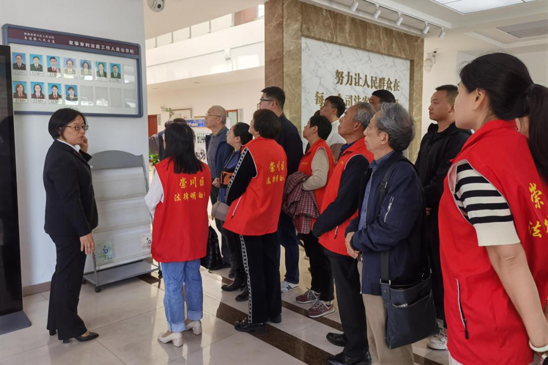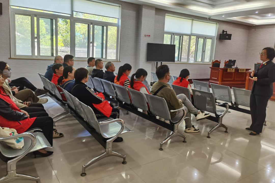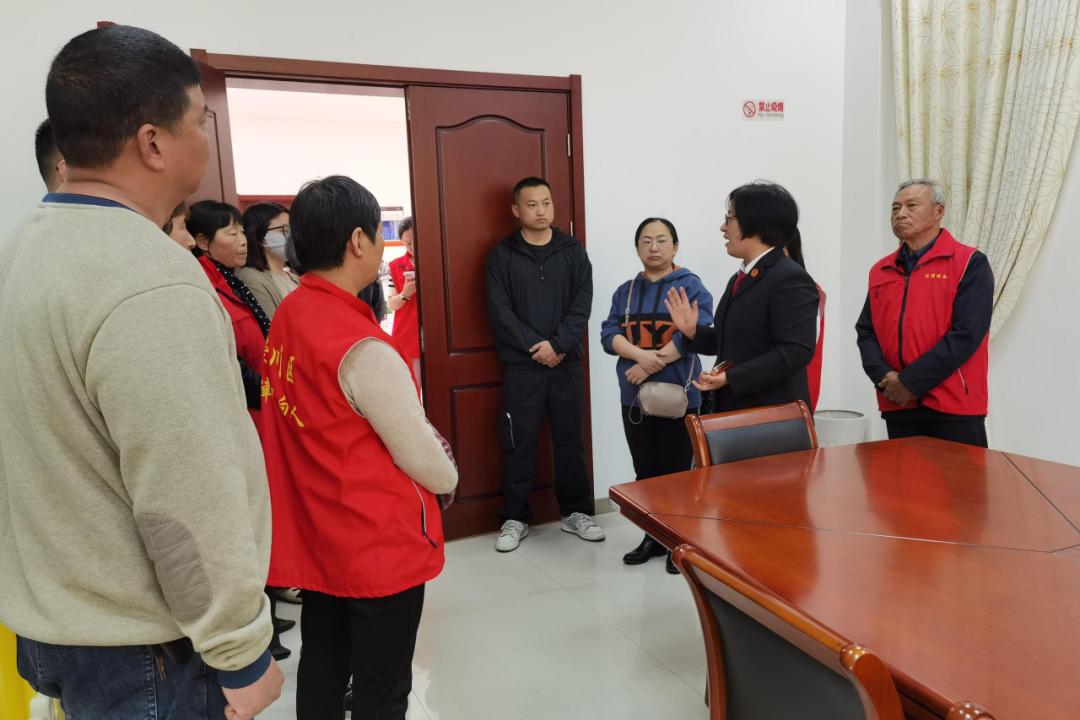 4月24日,崇川区天生港镇街道各社区十余名专职调解员到崇川法院南通港法庭观摩交流。