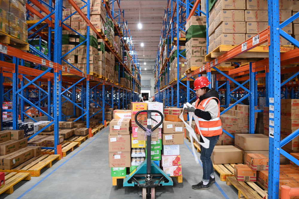 在兰州市皋兰县丰恩皋兰现代物流园,工作人员转运物品(11月12日 摄)。新华每日电讯记者 范培? 摄