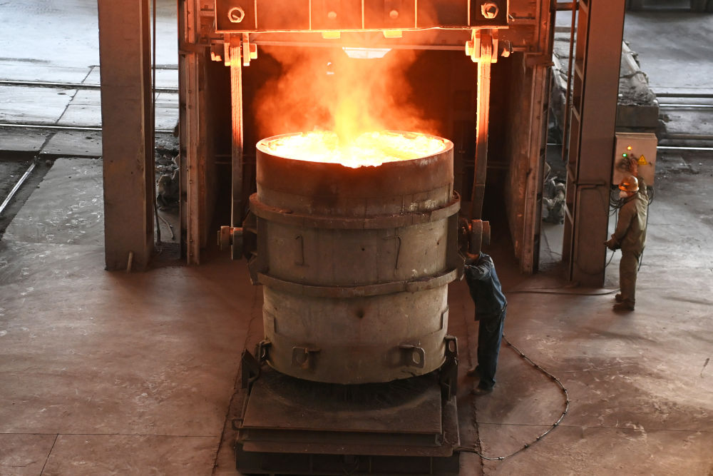 在兰州市永登县一家铁合金有限责任公司,工人在生产线上作业(10月29日 摄)。新华每日电讯记者 范培? 摄