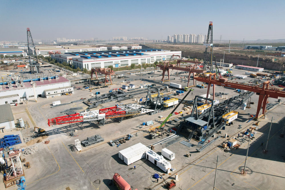 这是10月16日拍摄的兰州新区兰石集团高端装备产业园生产现场(无人机照片)。新华每日电讯记者 范培? 摄