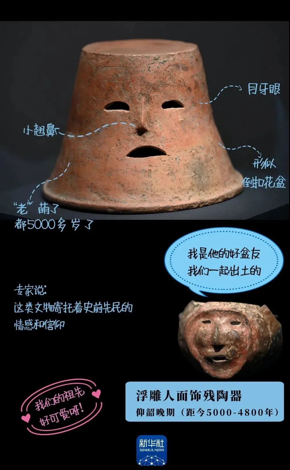 这是在陕西省西安市高陵区杨官寨遗址考古出土的镂空人面覆盆形器