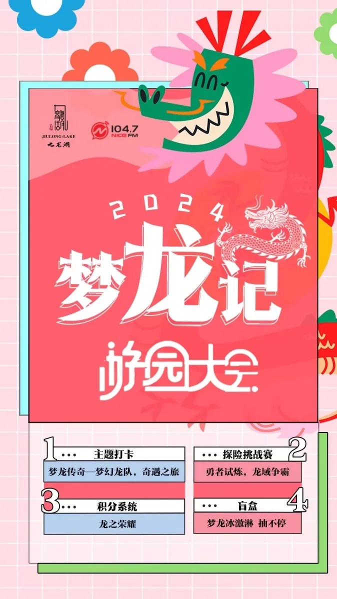 内容:设置《梦龙传奇—梦幻龙队,奇遇之旅》主题打卡、《勇者试炼,龙域争霸》探险挑战赛,推出“龙之荣耀”积分系统,所有入园游客均可抽取各类梦龙冰激淋,与“梦龙记”主题契合。