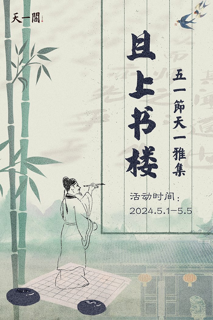 内容:以“且上书楼”为主题,设置“诗韵撷英”“诗情纸鸢”“清风古音”“落子生花”“墨韵流芳”“春风啜茗”“彩绘天一”七个体验环节,通过文人雅事,让大家在参观过程中感受古阁风雅。