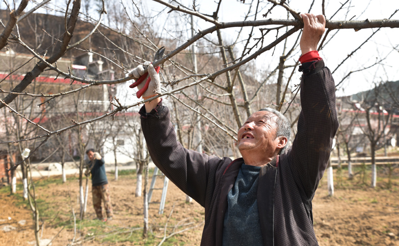 3月15日,麻坪镇云蒙山村村民在大樱桃园为樱桃树修枝。麻坪镇利用自然生态条件好、光照时间长、昼夜温差大的有利条件,发展大樱桃800亩,带动农户增收。