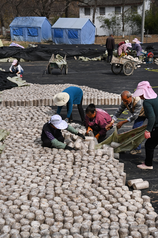 3月15日,麻坪镇云蒙山村村民在本村集体经济联合社标准化木耳产业基地为菌种刺孔。该村建成标准化木耳产业基地,种植木耳20万袋,壮大了集体经济,增加了群众收入。