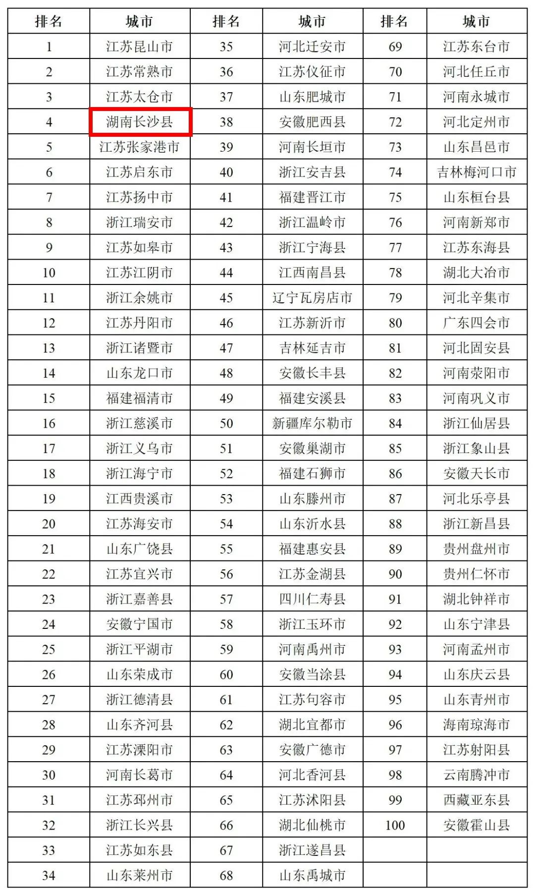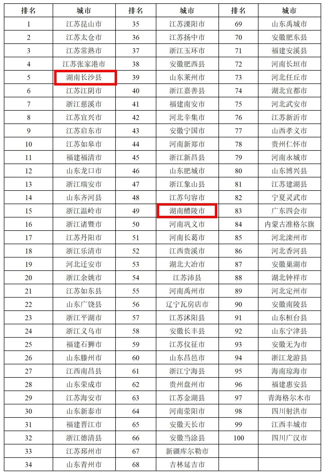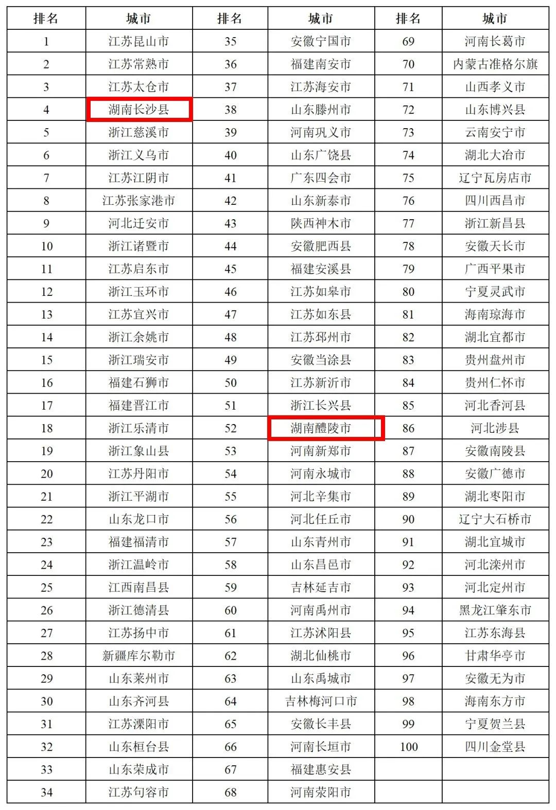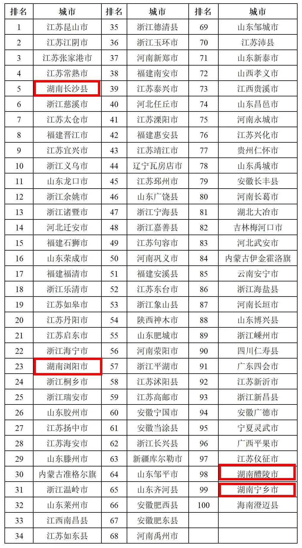 百强县市、百强区是县域经济发展的“火车头”,是我国中小城市实现现代化的探路先锋。在《2023年度全国综合实力百强县市》榜单中,我省4个县市榜上有名:长沙县位列第5,浏阳市位列第23,醴陵市和宁乡市分别位列第98、第99。
