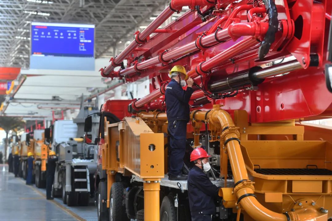 长沙县三一重工园区,技术工人在泵送装配线上调试泵车。湖南日报记者 郭立亮 摄