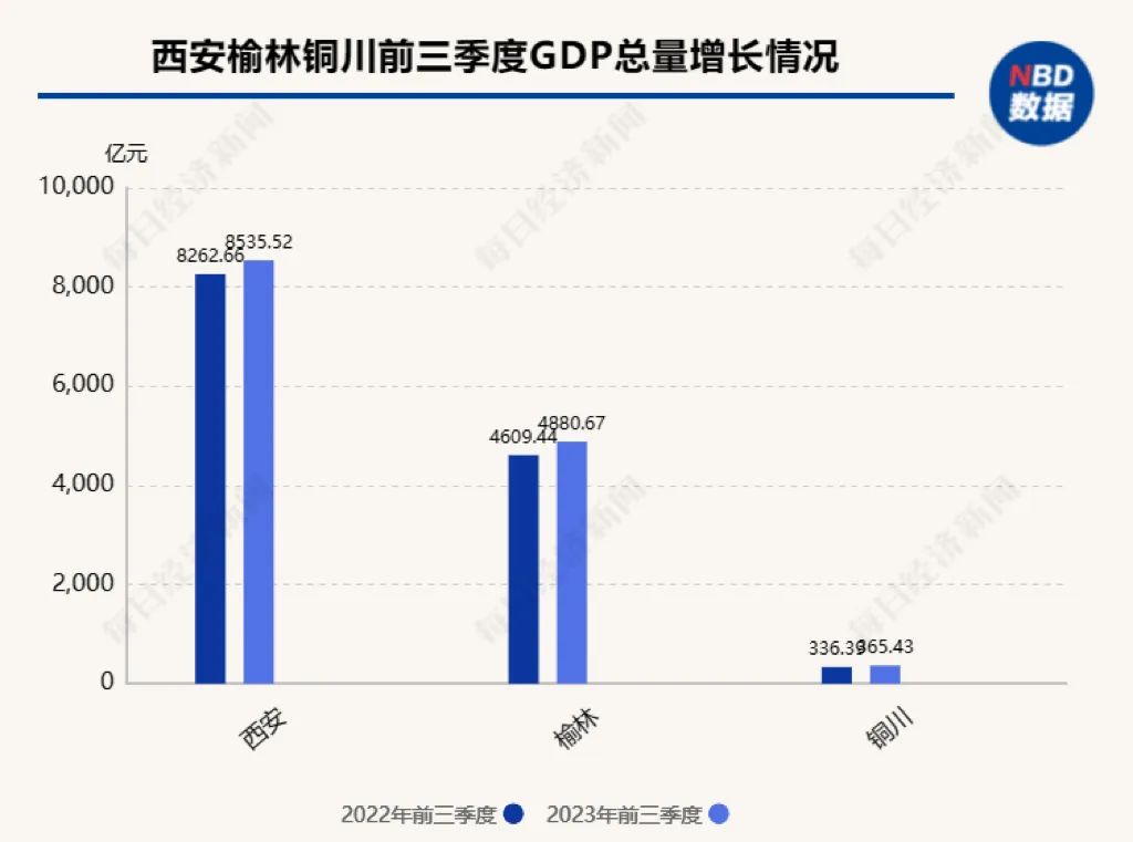 铜川此次表现意外抢眼,前三季度实现GDP总量336.39亿元,是除西安、榆林之外实现正增长的区域。