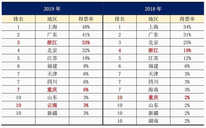 3、重庆得票率从第10名进步至第7名,市场准入便利度高