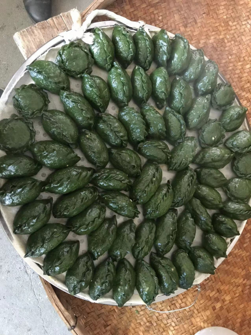 待封装的青团,邱晓红摄。