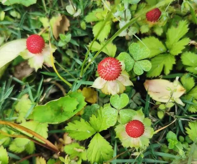 另外,还要学会区别另外一种不能吃的红色野果,名叫蛇莓。以前老人常吓唬小孩子,说蛇莓是蛇吐出来的口水,千万不能吃。
