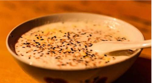 淡淡的酒香融合了奶香,还有嫩嫩的蛋花和略凝固态的牛奶,配上浓郁的芝麻香气,解馋、解渴,颜色黄白相间,味道滑嫩柔软,不得不尝。