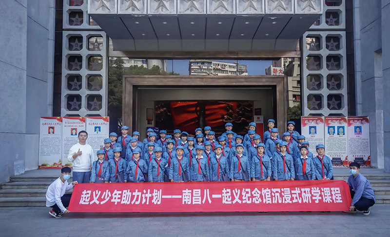 八一起义纪念馆深挖自身革命文物资源,借助大资源平台,以沉浸式研学、红色故事展演、红色文创等方式,根据不同受众开发丰富生动的“八一课堂”。一是线上线下沉浸式课堂。线上推出青少年红色教育课程《理想照耀中国》,将贺龙指挥部旧址转化为历史教室,将革命文物延展为思政“教材”,讲好“理想”大课题,培育时代新人;线下推出“起义少年助力计划”,采取“沉浸式近景演绎+双线互动+剧情讲解+装备拼装”等方式,使青少年在互动中感悟“八一”历史;二是红色故事展演大思政课。由八一馆自主编创、讲解员和社会志愿者倾情演出的《八一军旗红》,采用艺术与思政内容相结合的情景教学法,通过精彩演绎和深情诉说,为现场观众呈现了一场鲜活生动的思政大课;三是亲子美育课堂。举办“五彩八一”——积木搭建体验系列活动,招募95组亲子家庭,通过“目标性探索、竞争性体验、情感性反思”的美育课堂模式,互动搭建五彩斑斓的积木作品向人民军队致敬,在温馨的亲子时光中尽情领略红色情怀。