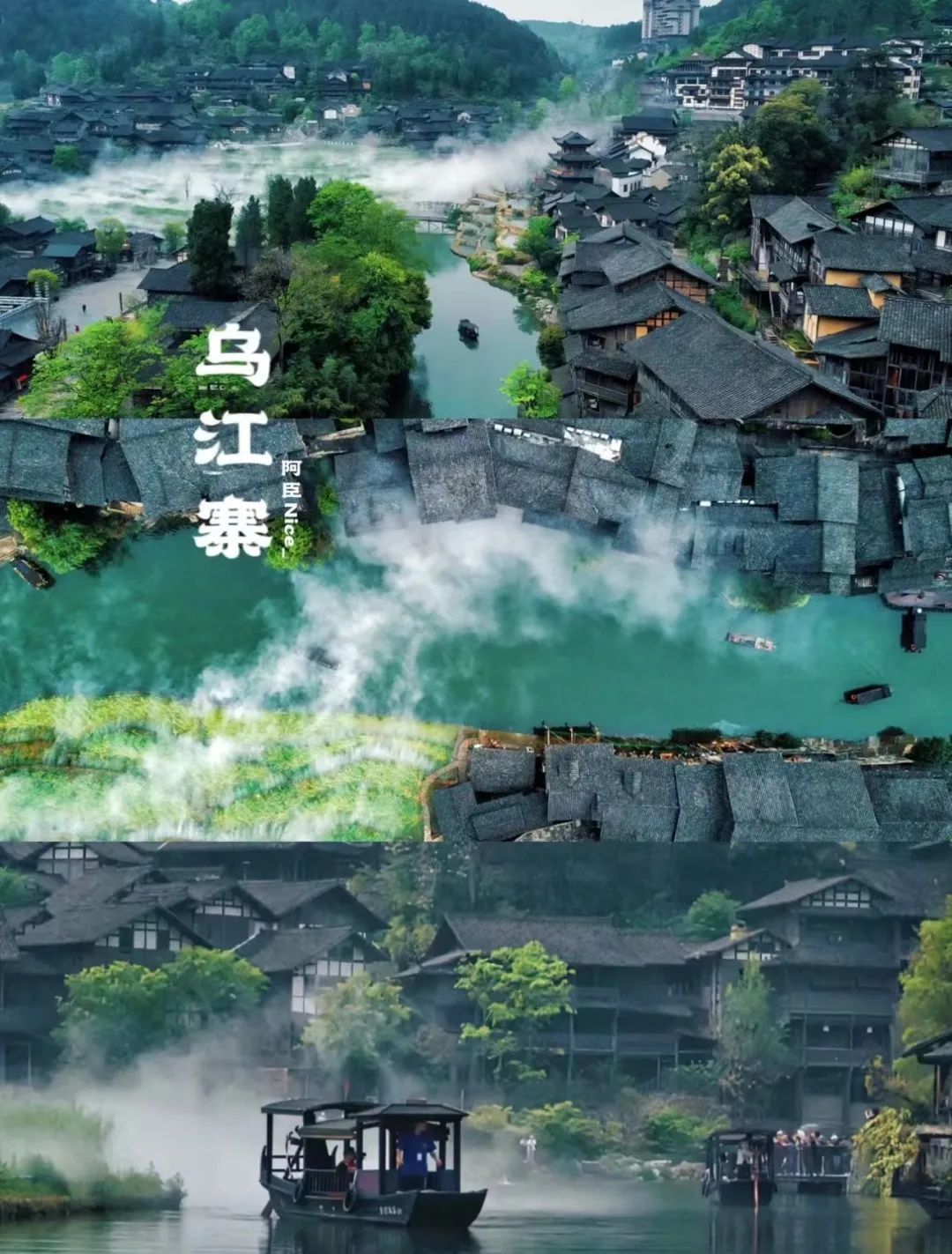 黔北特色吊脚楼、浪漫的摇橹船、梦幻的夜景,雨后烟雨朦胧的乌江寨仙气十足,初见就被它满眼青绿的水墨画卷惊艳!景区超级适合拍美照!每个窗口都是一幅水墨画,入夜灯火点亮,又像是走进了现实版“仙侠世界”。