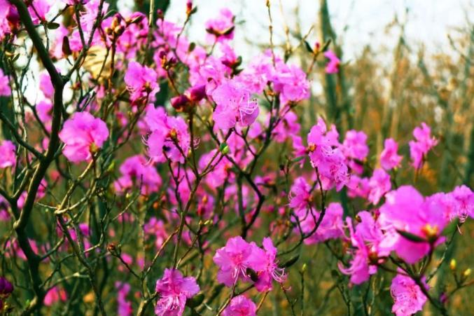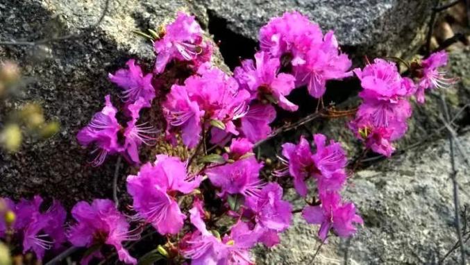 杜鹃花,又被称为“映山红”。碾子山的兴安山杜鹃坡,总能见到大片粉紫色的杜鹃花海绽放。