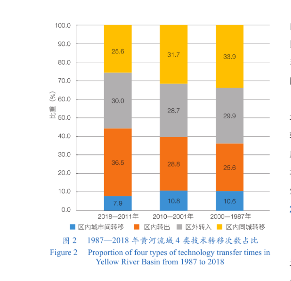 区外转入。从流域的技术获取来看,共有流域外21个城市与流域内30个城市之间产生130次技术转移,其中,深圳、沈阳、佛山等市向西安、潍坊、威海等市的技术转移次数略高。北京、上海、深圳等城市为主要技术来源地,潍坊、西安、济南、郑州、烟台等城市则是主要的技术承接地。