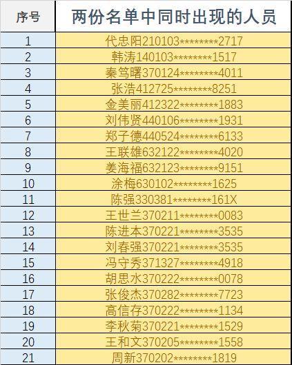 也就是说,这两拨人只被限制了一种出行方式。在去掉这些人后,两份名单中都剩下的人,就将同时被限乘火车和飞机。