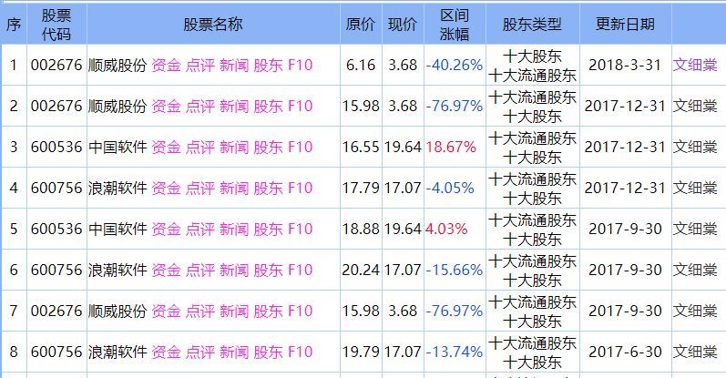 截至去年年底,文细棠还出现在顺威股份、浪潮软件、中国软件的十大股东榜单中,但到今年1季度,他退出了顺威股份外的其他公司前十大流通股东。