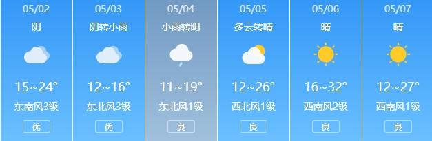 西安市气象台2024年05月01日16时发布天气预报:受高空槽东移影响,近期我市云量较多,2日气温略有回升,最高气温可回升至25℃左右,南部山区有分散阵雨。3-4日有一次降水、弱降温天气过程,降水前期伴有雷电、5-6级短时阵风、局地有短时强降水,主要降水时段为3日傍晚到4日白天,量级以小到中雨为主,最高气温降至20℃以下;5日以后天气转好,气温回升明显。另外2-3日有3级左右偏东风,阵风5-6级。