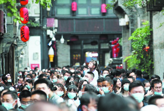 黄金周期间,锦里等成都景区游人如织 记者 李冬 摄