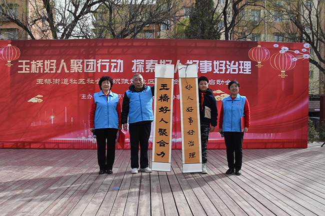 据了解,玉桥街道将聚焦基层治理主线任务,为“玉桥好人”治理服务队打造微阵地、微服务、微项目,探索建立“132”工作模式:“1”即坚持党建引领为核心,“3”即积极发展“党员+志愿者+楼门长”等力量,“2”即“保障+服务”双线联动,不断提升“玉桥好人”服务水平。带动队伍参与社情民意走访、环境卫生整治、应急处突、调解矛盾纠纷等工作。