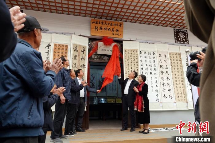 嘉宾在“中国历史文化名村”光村第三届旅游文化周上为老年书画创作基地揭牌。高新生摄