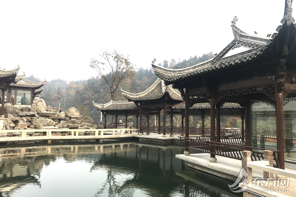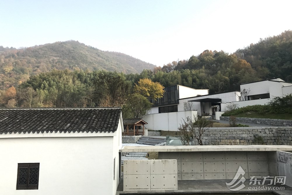 下山一路向东,记者一行来到位于陵阳镇的九华山下礼村文化体验区。在这里,还保留了原始的“青瓦白墙”徽派古村落建筑,据介绍,这些古建筑在进行加固工程之后,将用作咖啡厅、手工坊,以及一些其他的休闲娱乐空间。古建筑的周围,分散着与之风格相似的现代建筑,这里有会议厅、图书阅览室,以及酒店。