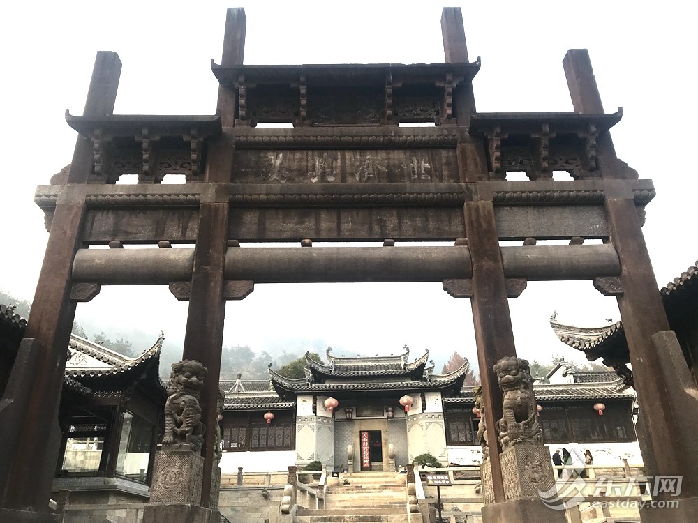 离开了九华山下礼村文化体验区,大巴车停在了一个巨大的石牌坊外,这里是徽苑文化展示和康养中心。踏着台阶上去,这里到处散发着古色古香的气息:饱受风吹雨打的石头雕刻、弥漫着松香的亭台轩榭,以及展列在堂屋内厅的木雕、老楹联……