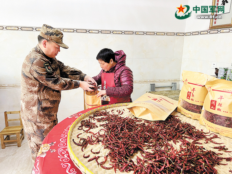 阆山村77岁老人汪十斤,去年制作了一批辣椒制品,打算年底卖个好价钱,谁知因销售渠道不畅,未达预期。在军地联合帮扶下,老人贮存的辣椒制品被抢购一空。
