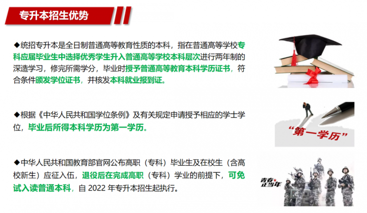 2022年专升本录取2180余人,较2021年提升1000余人;专升本人数和质量明显提升,在同类院校中名列前茅。其中商科类专业上线率达到98.3%,经济类、计算机类专业上线率97%以上。医药类专业、教育类专业上线率均在95%左右。
